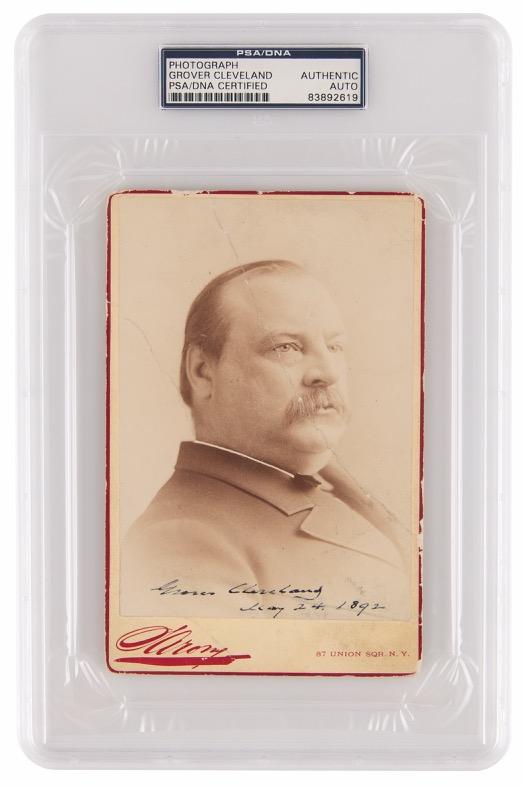 16. James A. Garfield Elusive Signed Check as President. Exceptionally rare Riggs & Co. bank check, 8 x 2.75, filled out in another hand and signed by President Garfield, “J. A. Garfield,” payable to “Chr. Ruppert” for $45, March 22, 1881. In very good to fine condition, with trivial brushing to the signature, a short split to the top of one of the vertical folds, and light wrinkling from an old mounting remnant on the back. Encapsulated in a PSA/DNA authentication holder. Accompanied by a handsome vintage matte-finish 8.5 x 12.5 profile portrait of Garfield by the Sarony Studio of New York. Given the briefness of his incumbency, Garfield remains rare across all presidentially signed formats, and especially so on checks, with this being only the second example that we have ever offered. Moreover, Garfield assumed the presidency a mere 18 days before signing this check. An elusive and sought-after presidential treasure. Starting Bid $300
