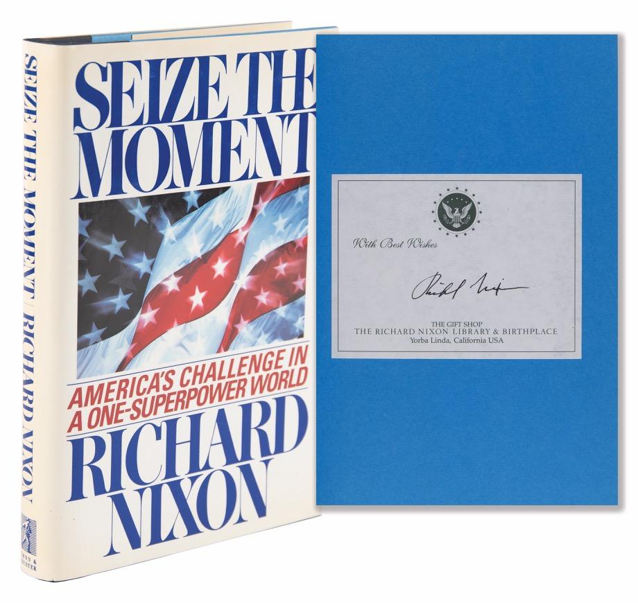 15. U. S. Grant Signed Book - Report of the Commissioner of Internal Revenue (1866). Signed book: Report of the Commissioner of Internal Revenue on the Operations of the Internal Revenue System for the Year Ending June 30, 1866. First edition. Washington: Government Printing Office, 1866. Hardcover bound in quarter morocco with marbled boards, 6 x 9, 349 pages. Signed on a free end page in ink, “U. S. Grant, General, March 14th, 1867.” Autographic condition: very good to fine, with scattered staining to the signed page, and haloing to the ink in Grant’s handwriting; his autograph is large and bold. Book condition: VG-/None, with minor foxing to the textblock, edgewear and scuffing to spine, and rubbing to boards and corners.