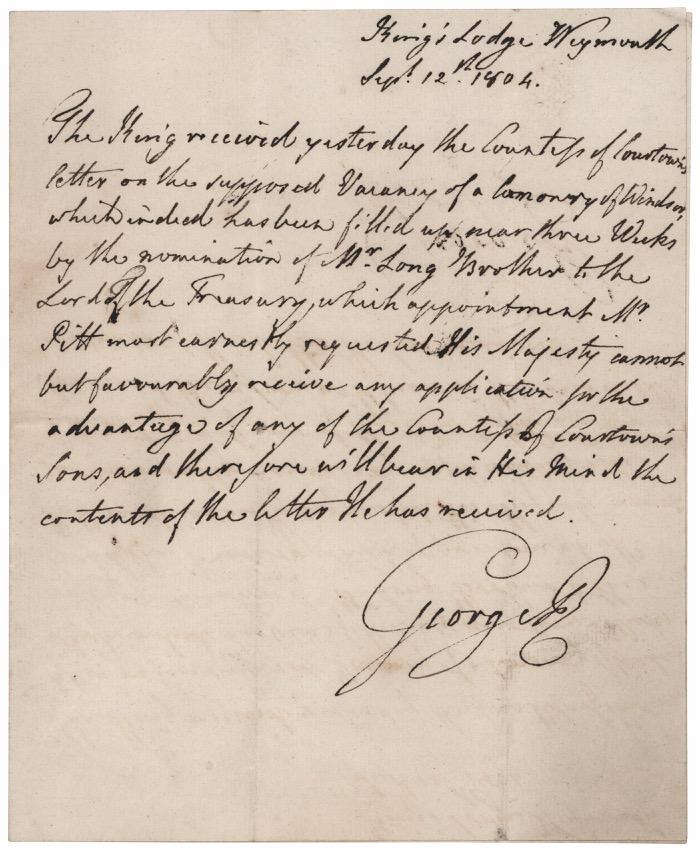 159. William Wilberforce Autograph Letter Signed. British politician, evangelist, and philanthropist (1759-1833) who played an important role in the movement to abolish slavery. ALS signed “W. Wilberforce,” four pages on two adjoining sheets, 7.75 x 9.25, October 14, 1789. Handwritten letter to an unknown recipient, in part: “Different matters have intervened to prevent my saying anything respecting my motions sufficiently certain to allow me to answer your friendly letter; I have been in much doubt about the practicability of getting to you from circumstances which it would be too long a story to tell, but the idea of our being but about 20 miles asunder still recurs & does not allow me to quit this part of the country with’t fulfilling my engagement.” Wilberforce adds a lengthy postscript that continues onto the reverse of the second integral page. In fine condition, with some light edge toning. Starting Bid $200