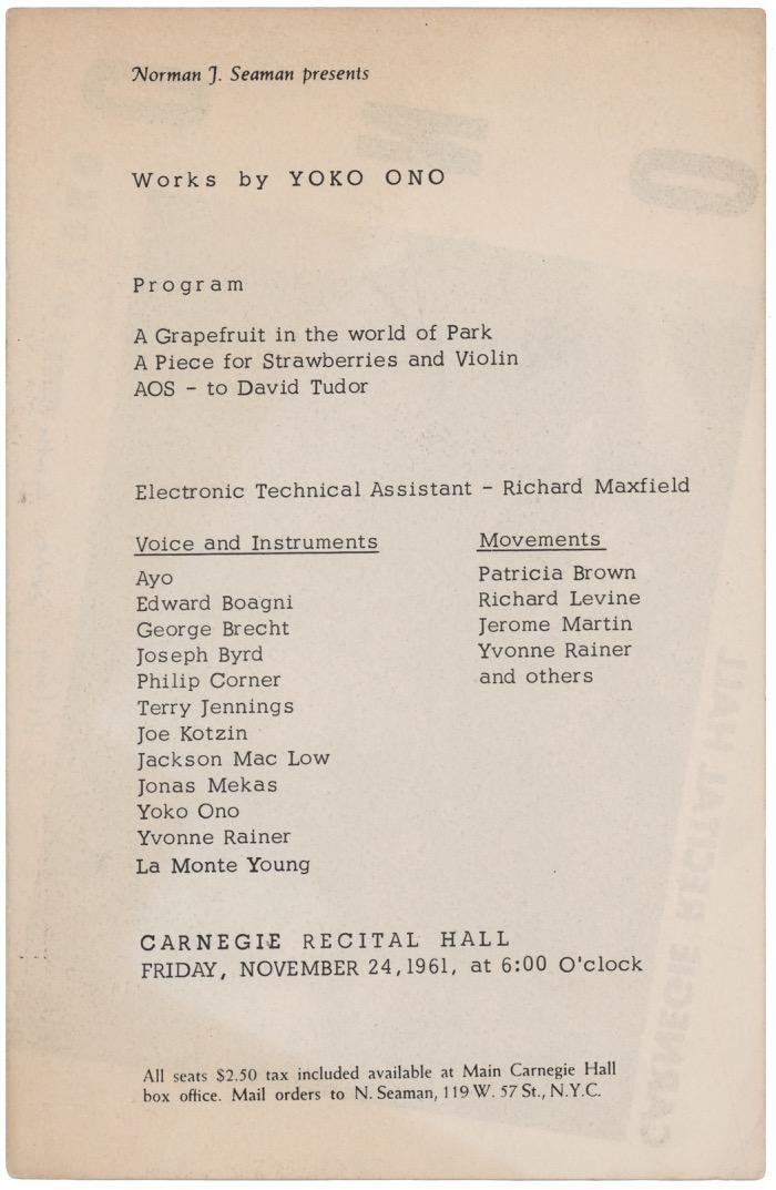 3022. Beatles: John Lennon and Yoko Ono Signed Book - Grapefruit. Scarce signed book: Grapefruit. Second edition, first printing. NY: Simon and Schuster, 1970. Hardcover with dust jacket, 5.75 x 5.5. Signed neatly on the first free end page in black ballpoint, “John Lennon” and “Yoko Ono Lennon.” In fine condition, with light wear and sunning to the dust jacket. A wonderful, uninscribed presentation copy of this uncommon Fluxus volume, famous as an early example of conceptual art. Starting Bid $500