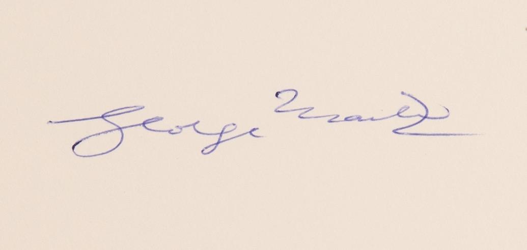 3021. John Lennon and George Harrison Signatures - Dated to the Beatles’ 1968 Stay at the Academy of Meditation with the Maharishi. Vintage ballpoint signatures and inscriptions, “To Diane, with love from George Harrison, x,” and “and love to Diane, from John Lennon, x,” on an off-white 5.75 x 7 sheet. In very good to fine condition, with edge toning, intersecting folds, and light creasing.