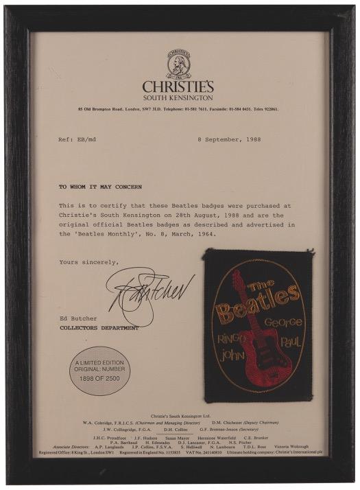 Accompanied by a delightful provenance letter from the original recipient, which reads, in part: “‘Oh look, there’s the Beatles,’ someone said as I got off the train at Liverpool Lime Street Station one Saturday afternoon in 1963 – I now can’t remember the month, but it probably was March or early April. I had been doing some overtime at the accounts department of the local electricity board…and as had been usual practice with my work colleagues, when we finished work, we caught the train to Liverpool to do some shopping.