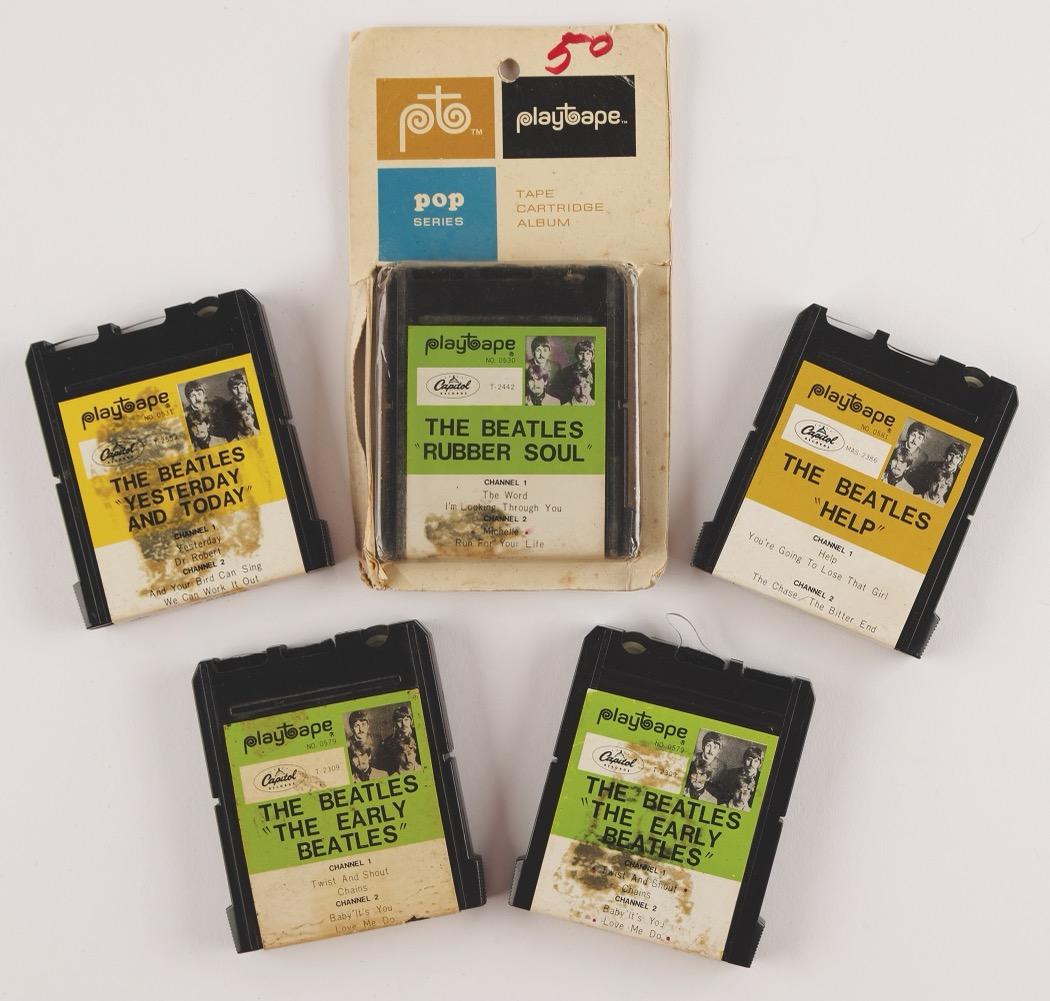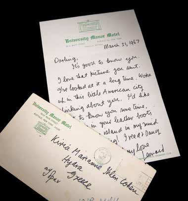 The original recipient won a radio contest to meet the Beatles at the Deauville Hotel, and the autographed postcard is accompanied by several related materials, including: a TLS by Michael Haptman, promotion manager for WINS Radio 1010, also signed by popular radio DJ and Beatles promoter Murray the K, February 14, 1964, in part: “I am happy to enclose two tickets for Eastern Flight #’s 607 and 2650 for February 16th, taking you and your guest down to Miami, Florida for The Beatle’s performance at The Deauville Hotel!”; an original ticket stub for the CBS Television production of the Ed Sullivan Show at the Deauville Hotel on February 16, 1964; the hotel room key, on its blue plastic Deauville Hotel keychain; an unopened Deauville Hotel sugar packet; an “I Love the ‘Beatles’” pinback button; and a newspaper clipping about the sixth-grader’s trip to Miami to meet the Beatles.