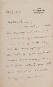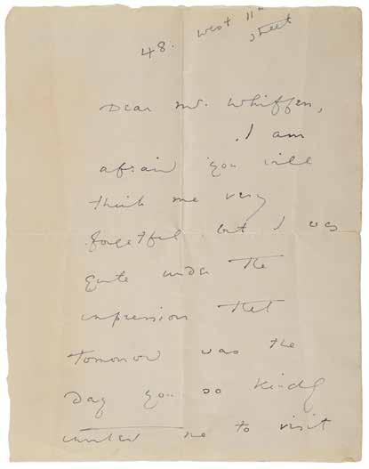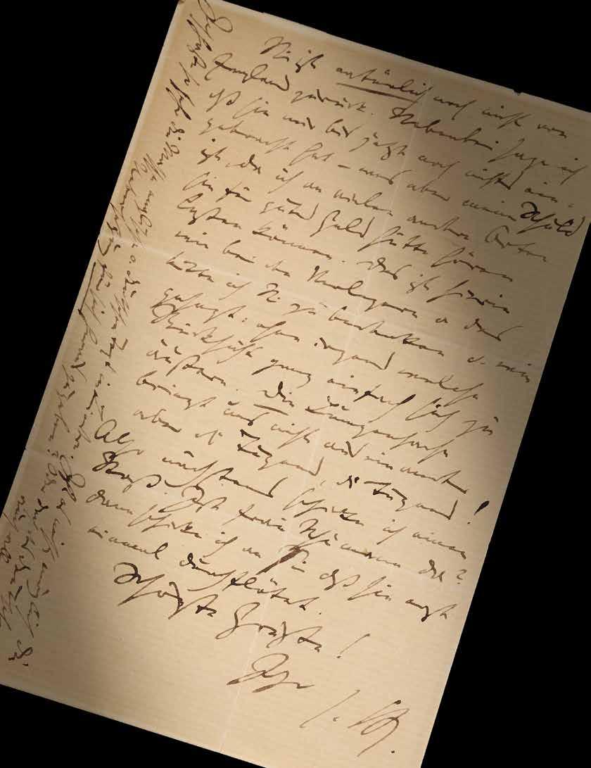 Famed German composer (1833–1897) whose works in the classical spirit, written in the midst of the Romantic era, take a place among the most enduring music of the 19th century. ALS in German, signed “J. Br.,” four pages on two adjoining sheets, 5.5 x 8.5, May 21, 1877. Handwritten letter regarding the publication of his music, in full (translated): “I feel sorry for my poor delicate songs! If only you would fast for one day, that is, keep away from bad jokes and expressions. Stillroth has several samples with him but the others are much nicer! Actually I have a collection of girls’ songs, where every possible condition is taken care of very nicely—except for that certain condition! There is even a girl’s curse in it. I really would like you to announce them as ‘Girls’ Songs,’ even if we don’t put it in the title.