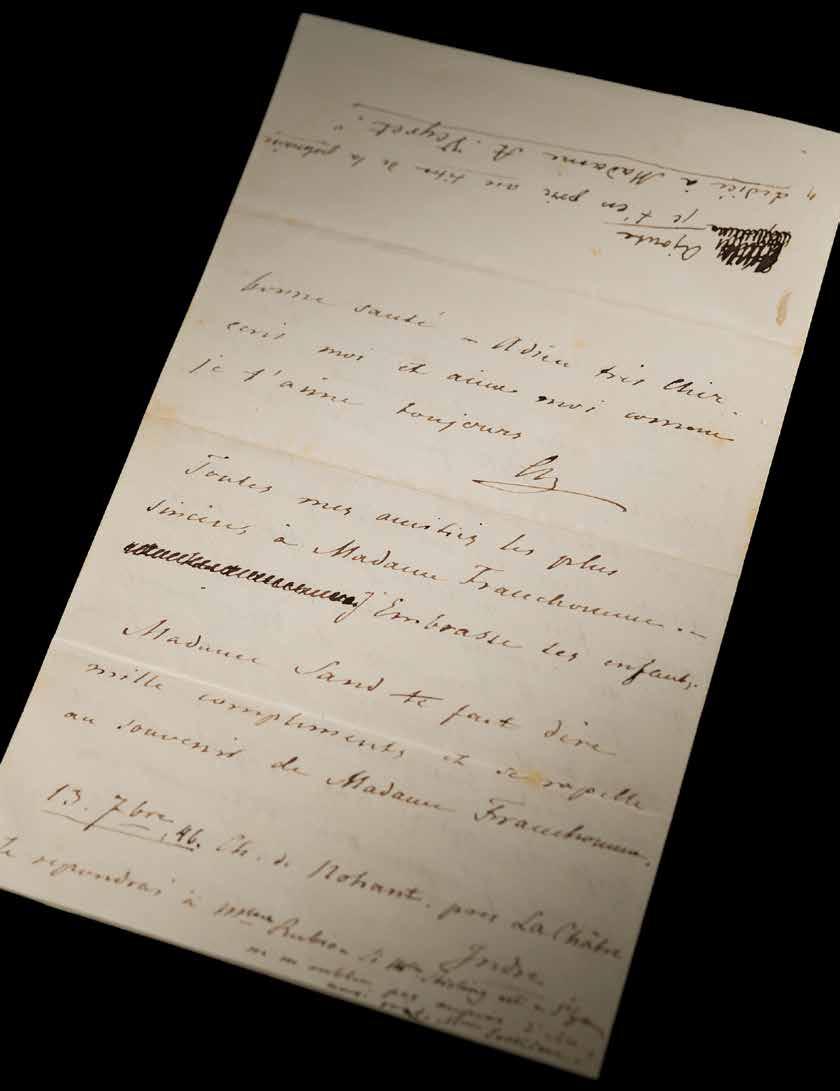 The letter also illuminates Chopin’s close personal and professional circle. Auguste Franchomme, the recipient, was his dearest friend and musical confidant, while the postscript greetings situate Chopin within a network of devoted supporters, including his companion George Sand and his Scottish pupil and patron Jane Stirling. Notably, the reference to Sand comes just a year before their famous breakup, lending some added poignancy. This letter passed by descent through the Franchomme family and was first offered at Sotheby’s in 2011.