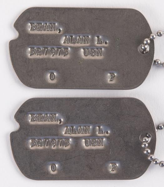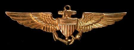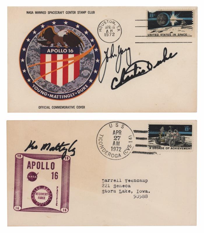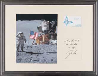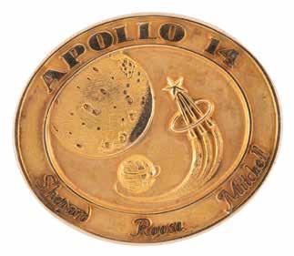 6106. Apollo 10 Gold Naval Aviator Wings Attested as Flown by Gene CernanFrom the Personal Collection of Edgar Mitchell. F\ Flown gold naval aviator wings carried on Apollo 10 by LMP Gene Cernan for Edgar Mitchell, measuring approximately 2 3/4˝ by 7/8˝, as attested to by an accompanying annotated card: “Navy wings were flown by Gene Cernan on Apollo 10.” The wings are marked on the reverse: “1/20 10K GF” and “USMC Ser. 298.” Also includes a rare embroidered Apollo 10 ‘Post-Flight’ crew patch, as worn by the crew on their post-flight jump suits at recovery; although examples of this patch design were flown on the mission, the flight status of this example is not known. In fine condition. Mitchell was designated as backup Lunar Module Pilot for Apollo 10. Both Mitchell and Cernan were naval aviators with degrees in aeronautical engineering from the U.S. Naval Postgraduate School. Starting Bid $300