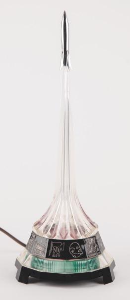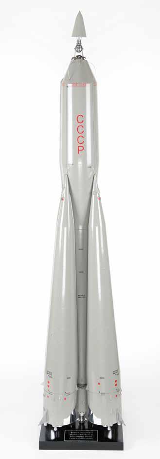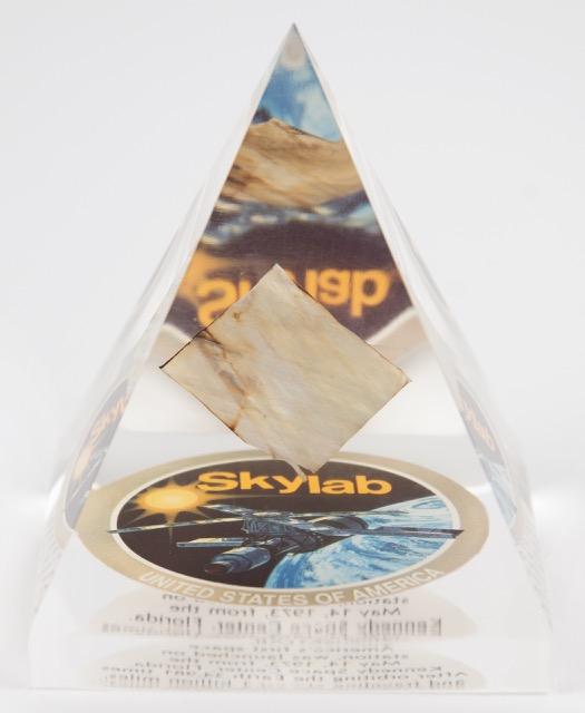 6041. Gemini 8 Flown Heatshield Display with Titan and Atlas Rocket Models. A substantial segment of flown heat shield from the Gemini 8 spacecraft, measuring approximately 2˝ x .5˝ x .75˝ and encased in a 3˝ x 1.5˝ x 1˝ Lucite block, displayed on a wooden base with an engraved plaque reading: “Heat Shield of Gemini #8, ‘First Docking in Space,’ Neil Armstrong, Dave Scott, 16 March 1966.” The base features circular stands for 9˝ tall models of the Gemini-Titan and AtlasAgena launch vehicles, both included. In fine condition, though the adhesive for the Titan model has let go, it could easily be reattached. An appealing presentation piece from a historic and harrowing flight: it achieved the first docking of two spacecraft in orbit, but also faced a critical in-flight emergency due to a stuck thruster, forcing the crew to perform an emergency reentry. Starting Bid $200