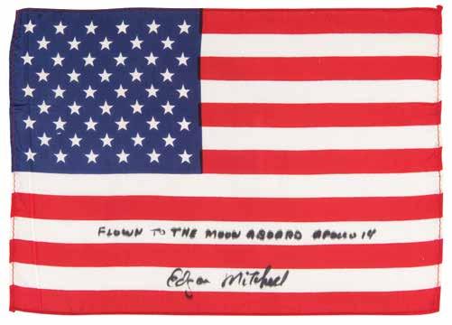 Apollo 9, the first flight to test the Lunar Module (LM) in Earth orbit, demonstrated the LM’s ability to separate from and re-dock with the Command Service Module (CSM), a critical maneuver for future moon landings. Additionally, Apollo 9 provided valuable insights into crew operations and spacecraft systems that were essential for the success of subsequent lunar missions. Flown flags of this unusually large size are few and far between—flags typically seen are approximately oneninth the size at about 6˝ x 4˝. A fantastic, impressive piece from a vital Apollo mission. Starting Bid $300