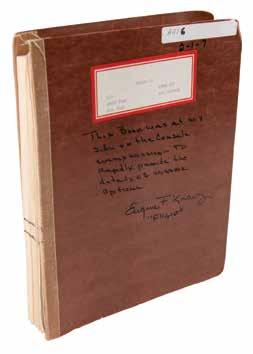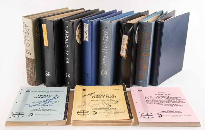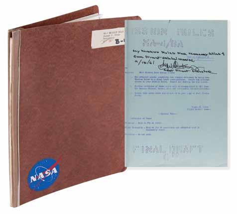 by expert paper conservator J. Franklin Mowery in 2012. His remarkable efforts saved the majority of this binder’s many incredible documents, which offer many rare, perhaps neverbefore-seen assignments issued to the Mercury Program spacemen. The binder is separated by numerous section sheets and contains Slayton’s handwritten review of the Mercury selection process that ran from February to April 1959. Several maps and pages loose from binder, as is a group of printed comic strips. In good to fine condition, with varying degrees of moisture damage, ranging from little to somewhat heavy, throughout. Accompanied by an Invoice and Documentation Report from J. Franklin Mowery. Starting Bid $1000