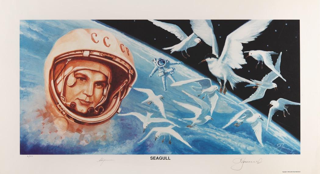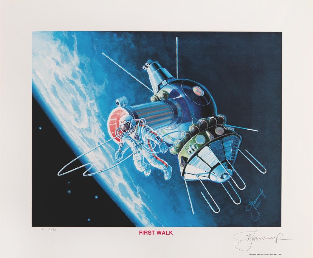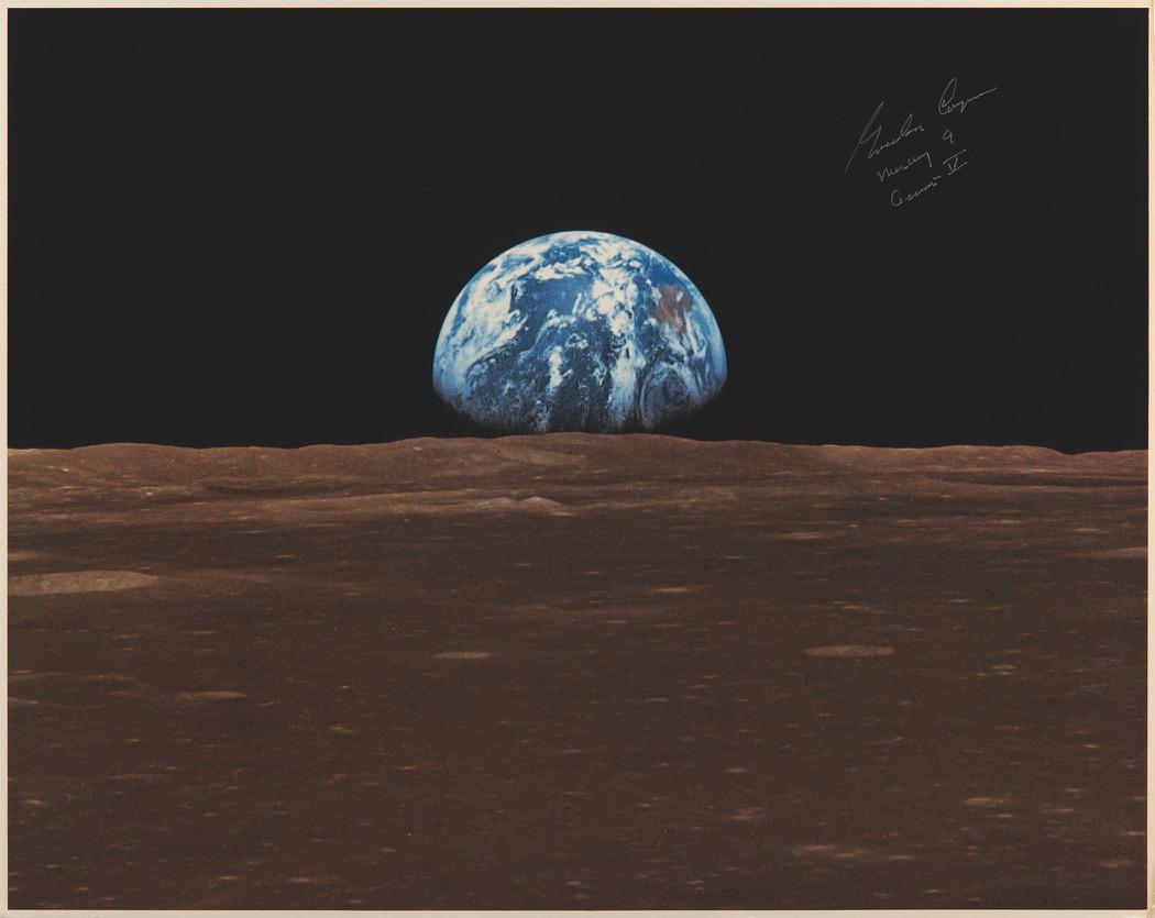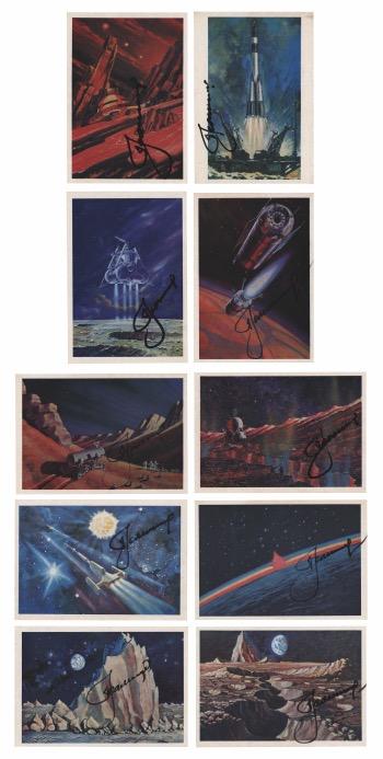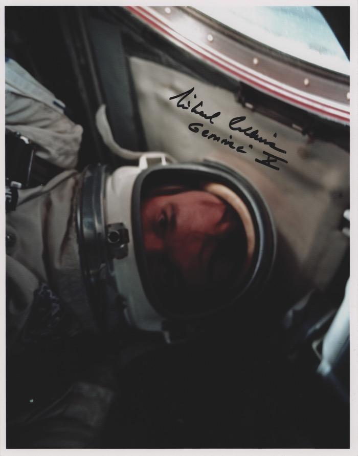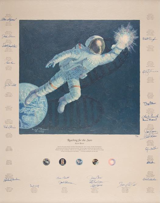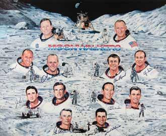 6031. Project Gemini Mission Insignia Painting, Fully Signed by All 16 Gemini Astronauts (Personally Obtained by Gene Cernan). Outstanding original Project Gemini insignia painting by NASA illustrator Margaret Gsell, featuring beautiful color emblems for all 10 manned missions and containing ink signatures from all 16 of the program’s pioneering astronauts, each of which have signed below their respective mission emblem: Gemini 3: Gus Grissom and John Young; Gemini 4: Jim McDivitt and Edward H. White II; Gemini 5: Gordon Cooper and Charles Conrad; Gemini 6: Wally Schirra and Tom Stafford; Gemini 7: Frank Borman and James Lovell; Gemini 8; Neil Armstrong and Dave Scott; Gemini 9: Tom Stafford and Gene Cernan; Gemini 10: John Young and Michael Collins; Gemini 11: Charles Conrad and Richard Gordon; and Gemini 12: James Lovell and Buzz Aldrin. The emblems are painted on an off-white 21.5 x 22.5 sheet of illustration paper bearing an affixed ‘Gemini Spacecraft’ capsule image and printed text for each mission. Additionally, Gsell has hand-painted the Gemini program emblem to the upper section, and both Gemini 3 and 4 are represented by American flags. Framed sans glass to an overall size of 25.5 x 26.5. In fine condition. Accompanied by a letter of provenance from Gsell’s daughter, explaining how Apollo 17 moonwalker Gene Cernan compiled the signatures on this painting. Starting Bid $1000