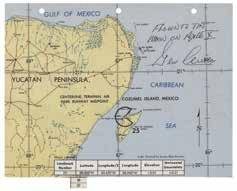 Signed by Gene Cernan. Scarce flown double-sided 10.5 x 8.5 first edition NASA Earth landmark map carried into lunar orbit during the Apollo 10 mission, signed and flight-certified in black ink, “Flown to the moon on Apollo X, Gene Cernan, Apollo XVII.” Printed by the Army Map Service, the map shows the Yucatan Peninsula situated between the Gulf of Mexico and the Caribbean Sea, as well as Tres Puntas, Guatemala, on the Gulf of Honduras. A tab identifies the page as “26/27.” In very fine condition. Starting Bid $200