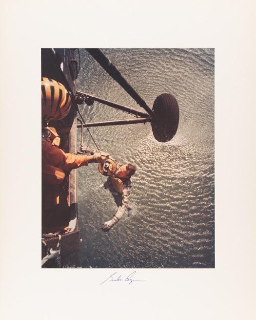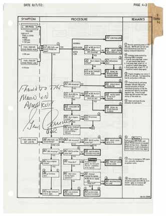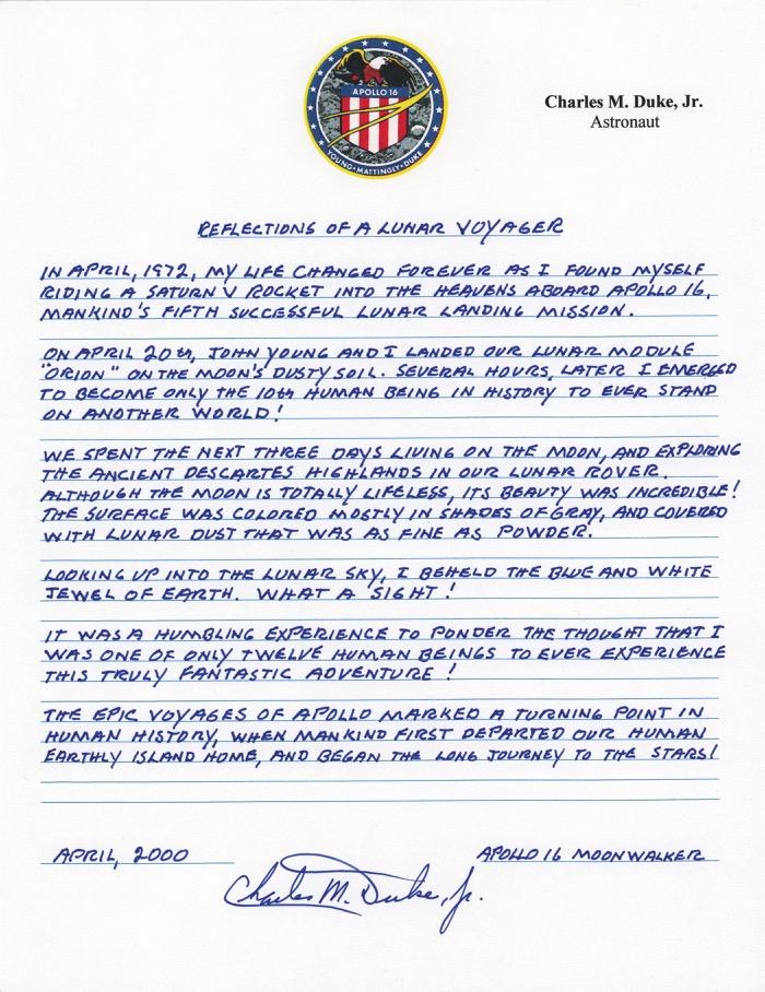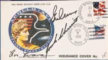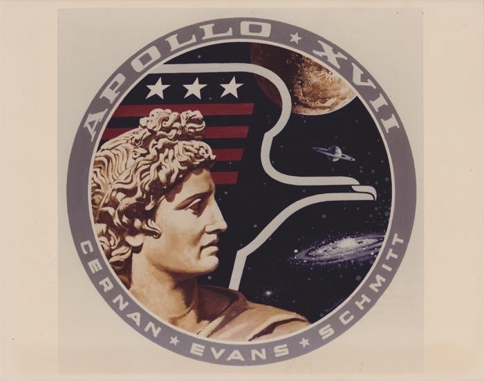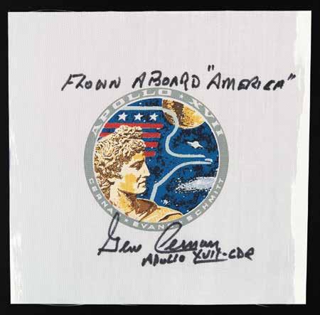 “This emblem was carried in Snoopy as Gene Cernan and I descended to within 50,000 feet of the lunar surface”
