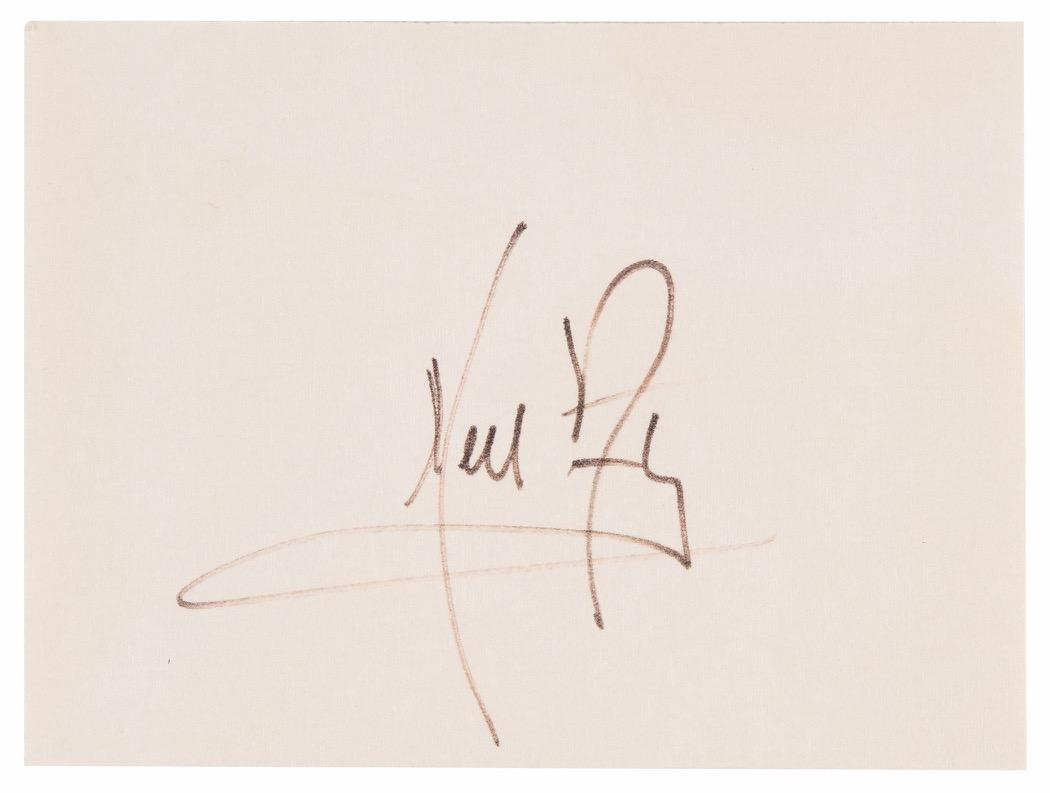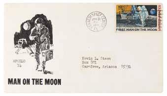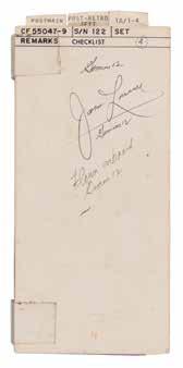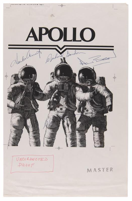 Accompanied by additional newspaper clippings, three prints of Eisele holding the offered cue card, and a printed copy of the cue card’s reverse side, which is annotated with a script of eight cue card prompts, with this lot’s card listed fourth: “From the Apollo room – Wally.” Accordingly, the script’s fifth prompt was the next card held up to the camera: “Keep those cards and letters coming in Folks – Mickey Kapp.” Starting Bid $1000
