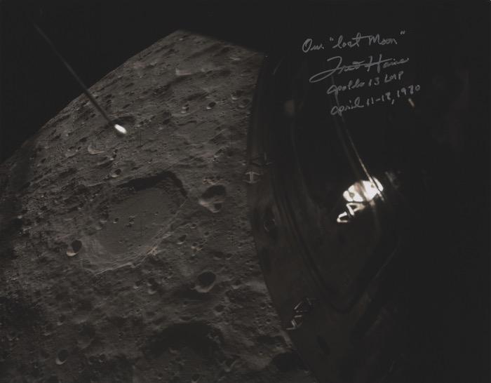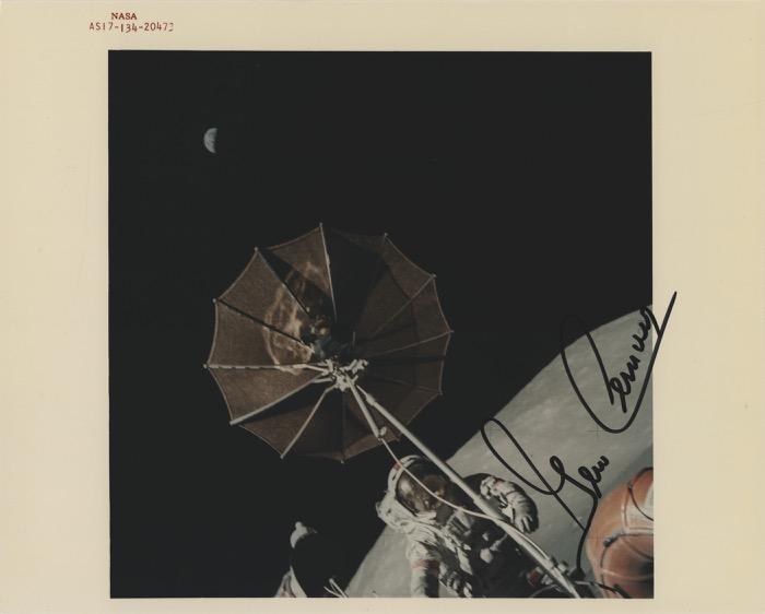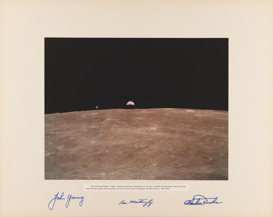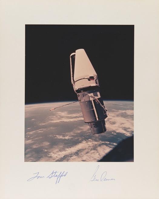“Flown to the moon on Apollo X”—Beta cloth carried into lunar orbit with attractive crew-signed photograph