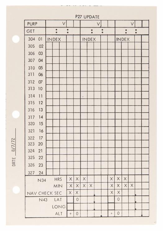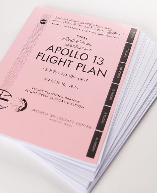 Most of Conrad’s extensive handwritten notes come in the second section, recording critical data points and denoting tasks completed or deleted, such as fuel cell purges, crew activities like sleeping and eating periods, and the completion of mission-related checklists. Early on, at 1:04:40, Conrad notes, “Saw meteor reenter below,” and at 2:02:50 records