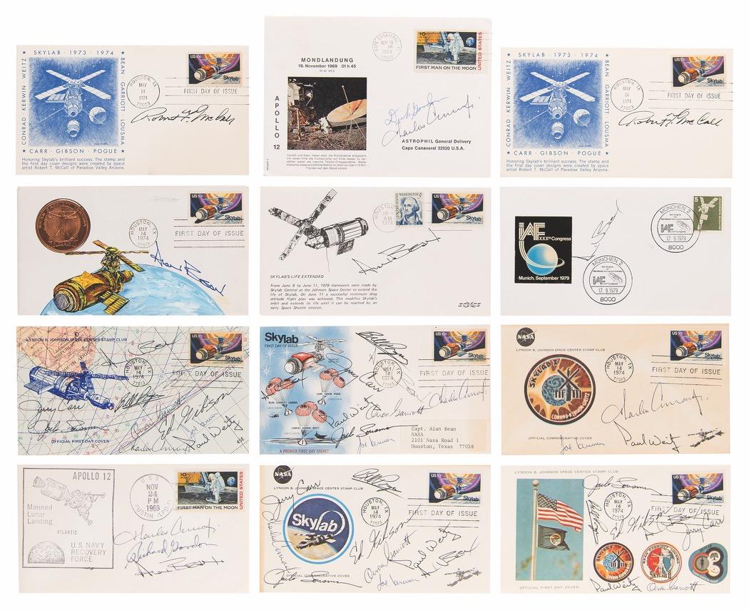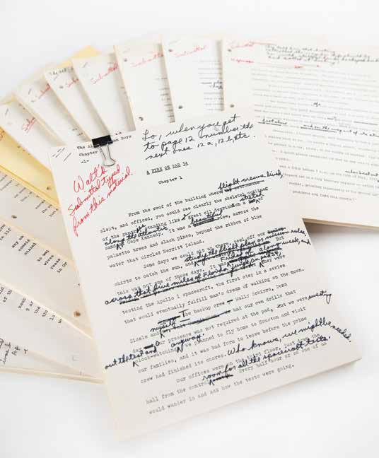 6075. Walt Cunningham’s Publishing Archive for The All-American Boys. Walt Cunningham’s archive of publishing material for his classic 1977 book The All-American Boys, an autobiographical account of his experiences as an astronaut during the early years of the U.S. space program. This impressive collection contains several complete early drafts that feature extensive handwritten edits and emendations made by Cunningham and coauthor Mickey Herskowitz. Among these is Cunningham’s revised typed first draft, contained in an accordion-style file folder with sleeves dividing the book’s 17 chapters, with several accompanied by related research sheets, notes, or correspondence. The archive also contains five boxes with labels identifying them as “Editor’s Comments Chs. 1 - 11,” “Editor’s Comments Chs. 12-17,” “Old Drafts, Chs. 1-12, 14-17,” “Final Draft, Submitted to Mac,” and “Galleys,” the latter of which contains two galley proofs that were printed by Macmillan Publishing of New York. These drafts and galleys are supplemented by six manilla folders containing miscellaneous chapter revisions, image options, editorial comments, legal department notes, and sundry NASA research guides and publications. In overall fine condition. The consignor notes that this archive was purchased directly from Cunningham in 2006. Starting Bid $300