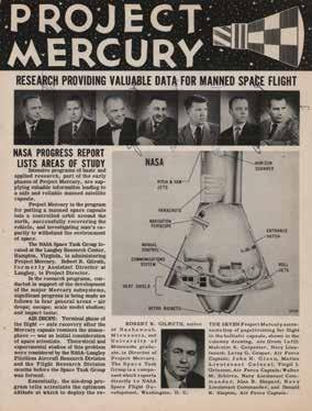6008. Mercury 7 Signed NASA Brochure. Fantastic official NASA brochure from April 1959, headed “Project Mercury: Research Providing Valuable Data for Manned Space Flight,” four pages, 8 x 10.5, signed in ink by the original ‘Mercury Seven’ astronauts: Scott Carpenter, Gordon Cooper, John Glenn, Gus Grissom, Wally Schirra, Alan Shepard, and Deke Slayton. The brochure depicts each of the Mercury 7 astronauts and provides progress reports on research and development of the Project Mercury spacecraft, documenting water drop tests, escape system trials, wind tunnel analysis, and parachute development. In fine condition, with generally poor-to-moderate contrast to the signatures. Accompanied by a letter of provenance stating that this signed brochure was given by Alan Shepard to Jewel Spangler Smaus, a family friend and co-author of the book America’s First Spaceman (Doubleday, 1962). Starting Bid $200