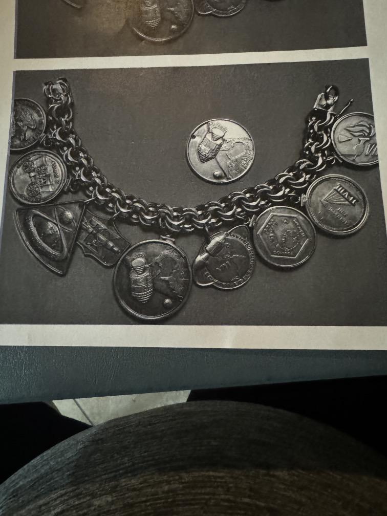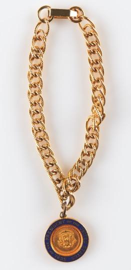 Stunning bracelet with flown charms presented by Wally Schirra to his family members, highlighted by a rare gold Robbins medallion carried on Apollo 7