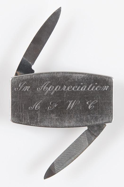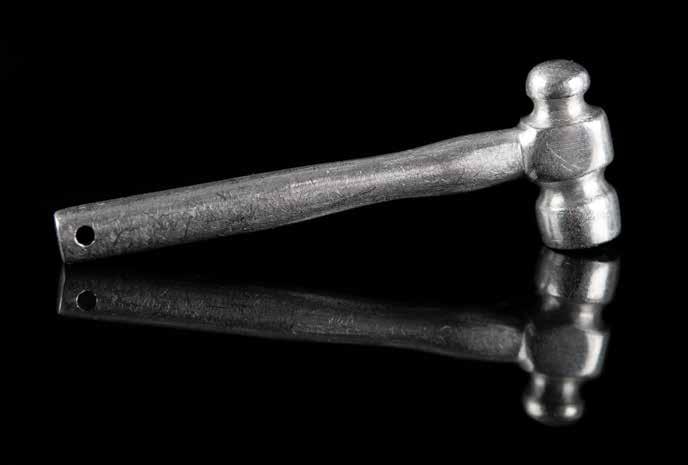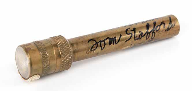 Miniature Aluminum Hammer - From the Personal Collection of Gordon Cooper. Flown miniature aluminum hammer carried on the Mercury-Atlas 9 by Gordon Cooper, measuring 2˝ long and weighing a mere 3 grams, intended to be used to break any malfunctioning status lights aboard the Faith 7 spacecraft. In fine condition. Accompanied by a handwritten and signed provenance note from Gordon Cooper, in full: “This hammer was installed on the #1 Relay Switch of MA9 to break out any malfunctioning status lites. Flown on MA9—15–16 May 63.”