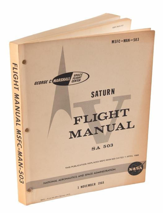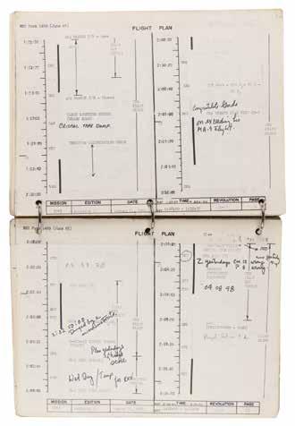 6032. Gemini 5 Flown Flight Plan with Extensive In-Flight Notations by Charles Conrad. Remarkable flown Gemini 5 flight plan used by Charles Conrad on the third crewed Gemini flight, identified on the front as “Part No. CF55069, Dash 1, S/N 50, SC 5, Book 1, Remarks: Flight Plan,” with the title page reading: “Revision 2, GT-5 Flight Plan, Prepared by Flight Crew Support Division, Spacecraft Operations Branch, August 11, 1965,” and marked, “Internal NASA Use Only.” The ring-bound plan measures 8 x 10.5 and contains 90 sheets (many double-sided), inclusive of the stiff covers. It is divided into “Section I: Launch Through Rendezvous” and “Section II: Flight Plan,” followed by ten sheets of map plates.