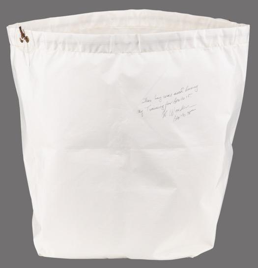 6102. Apollo 10 Ablative Heatshield Plug - From the Collection of John Hirasaki. Ablative heatshield plug from the Apollo 10 Command Module Charlie Brown, 2.25˝ in length and 1.5˝ in diameter, engraved “10” on the metal end. The plug is housed in its original bag with an unfilled ‘Temporary Parts Removal Tag” from the Space Division of the North American Rockwell Corporation; the reverse of the tag is marked in felt tip, “CM 106, Apollo X, #10 Bolt Plug.” In fine condition. Accompanied by a signed biographical sheet from noted NASA engineer John Hirasaki, from whose personal collection this plug derives. Hirasaki is an American mechanical engineer (born 1941) who worked for NASA during the Apollo 11 mission. After the mission, he – along with Buzz Aldrin, Neil Armstrong, Michael Collins, and flight surgeon William Carpentier – became one of the first five known humans to