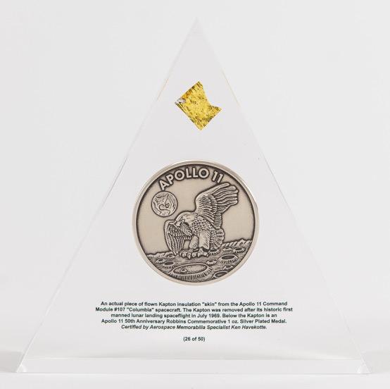 “Thanks for your help in making Apollo X a success”—a flown Robbins medallion presented by the crew to backup LMP Ed Mitchell