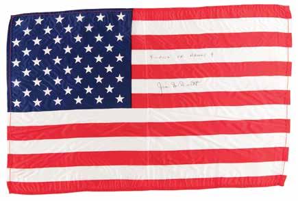 6096. Apollo 9 Flown Oversized American Flag - From the Personal Collection of Jim McDivitt. Fantastic large-size American flag carried into orbit on Apollo 9, measuring 18˝ x 11˝, signed and flight-certified in black ink by the mission’s commander, “Flown on Apollo 9, Jim McDivitt.” In very fine condition. Accompanied by a certificate of authenticity from Astronaut Central.
