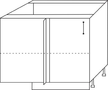 alsó 1 ajtós sarok, polcos 100 x 82 x 55 Beépítési méret: 105 x 65 cm