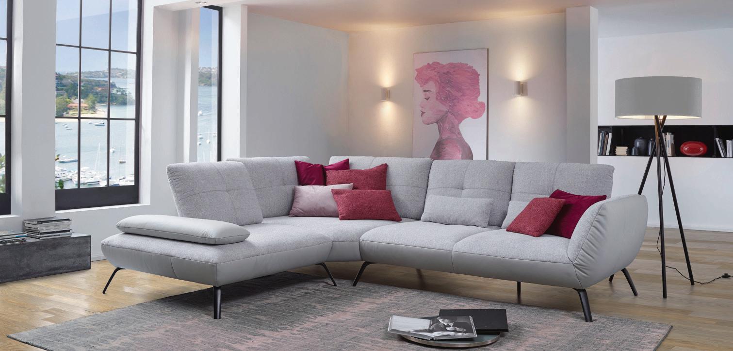 2 üléses kanapé bal kar „B“ karfa, 2 ülésmélység állító funkcióval és 2 deréktámasz párnával sarokelemhez vagy lábtartós fotelhez csatlakoztatható 160 x 93 x 121-137 Ülésmélység: 61-88 43/46 • 2021