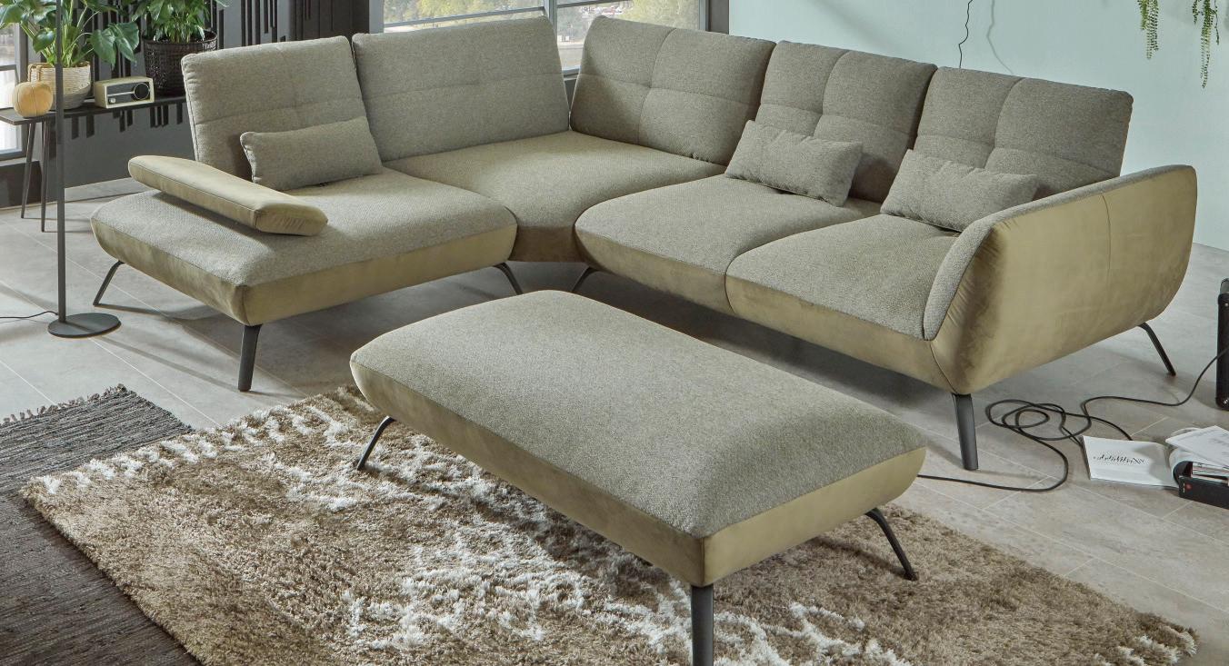 2 üléses kanapé bal kar „A“ karfa, 2 ülésmélység állító funkcióval és 2 deréktámasz párnával sarokelemhez vagy lábtartós fotelhez csatlakoztatható