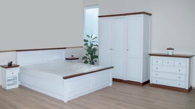 Concerto 5529 éjjeliszekrény, 5519 ágy ágyneműtartóval, 5534 akasztós szekrény, 5571 polcos szekrény, 5522 fiókos komód Szokli fehér színű, de rendelhető a párkány színében is