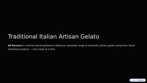 48 Flavours Serving the best award-winning handcrafted artisan gelato in Adelaide. Enjoy sorbet, and dairy-free, vegan, and classic flavors made with premium ingredients.