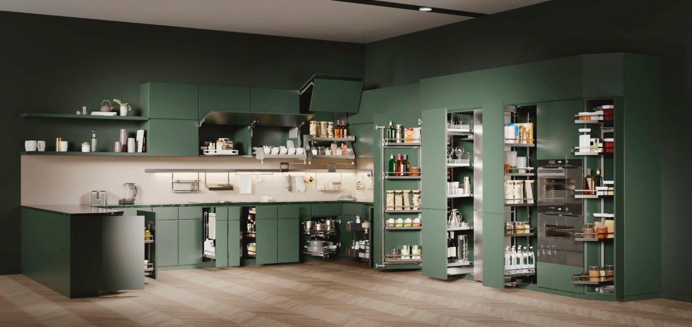 • Minimalismo funcional, con herrajes ocultos, bisagras invisibles y sistemas de apertura suave, que optimizan la estética y la experiencia de uso.