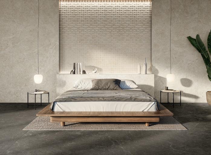 Debutando en Cersaie, la familia de superficies cerámicas efecto piedra inaugura una nueva filosofía de diseño dedicada al bienestar.