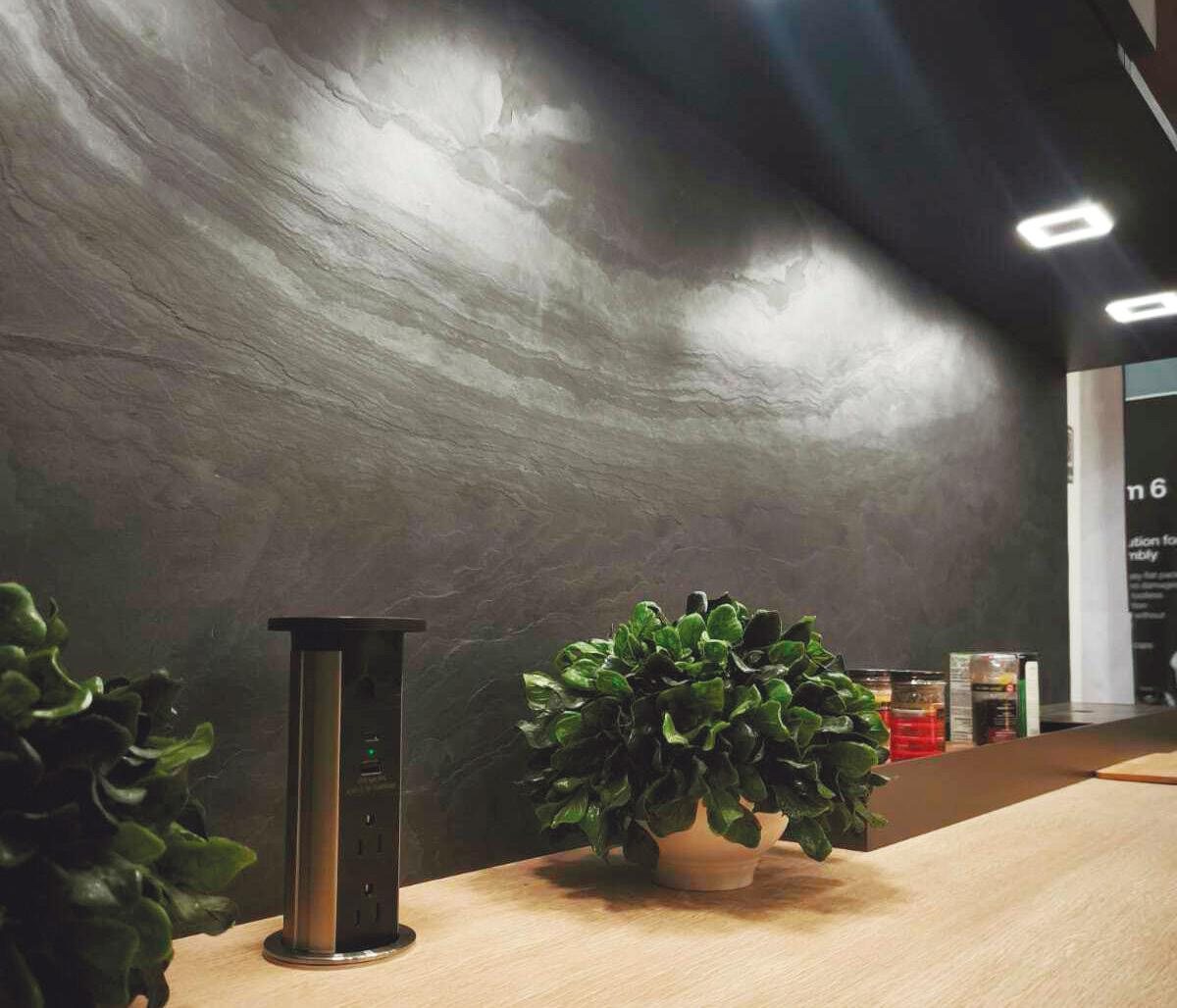 Su diseño atemporal ofrece posibilidades ilimitadas para mobiliario, paredes, pisos y techos. Los colores naturales de la piedra son resistentes a la luz y a los rayos UV, manteniendo su belleza con el tiempo y ofreciendo una óptica única imposible de replicar con materiales sintéticos.
