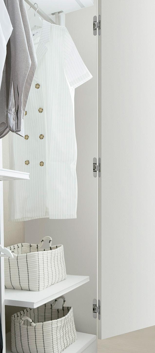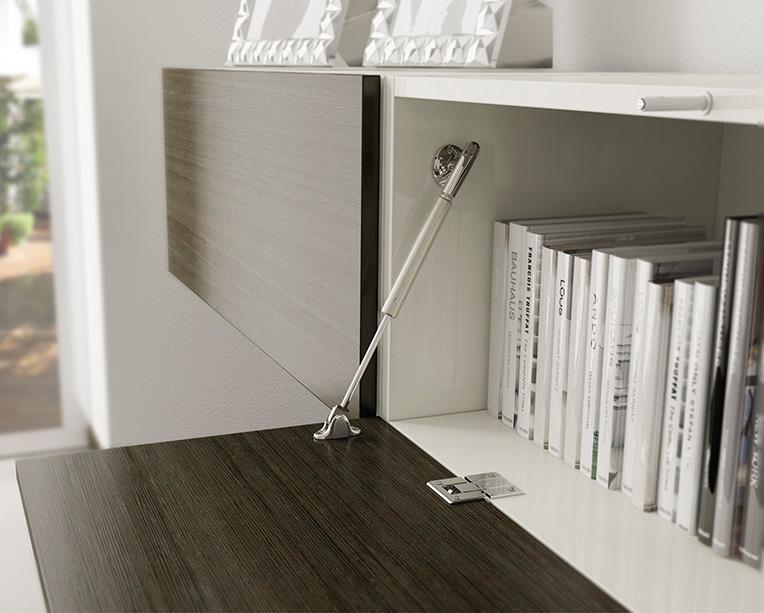 Los sistemas de apertura son una función esencial en el mobiliario, pues determinan tanto la ergonomía como la estética del diseño. Existen distintos tipos de bisagras y ángulos de apertura, según la aplicación del gabinete y el tipo de recubrimiento que se requiera en la puerta.