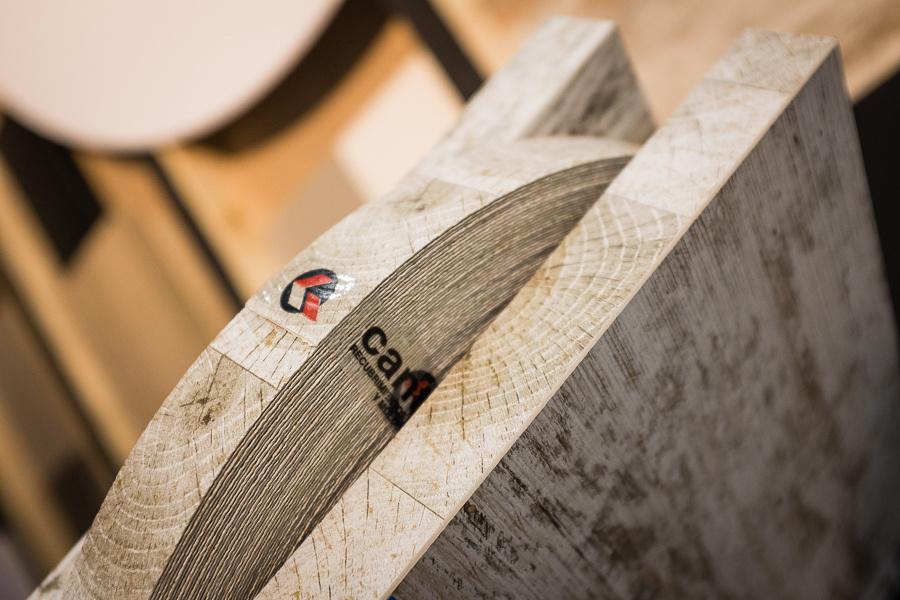 Cada lámina se adhiere a un soporte de fibra de vidrio bajo presión controlada, dando como resultado una superficie fuerte, ligera y flexible.
