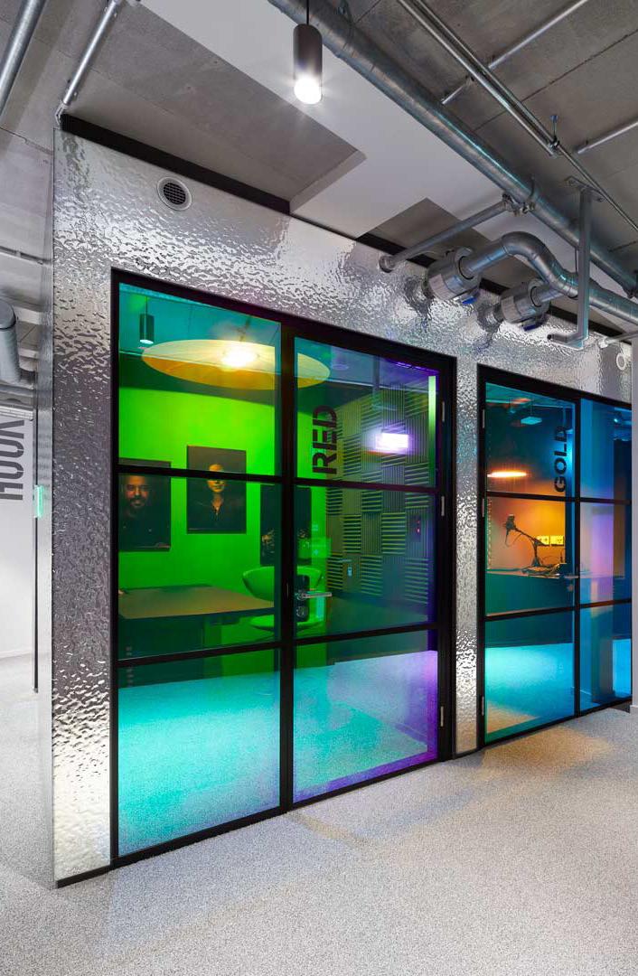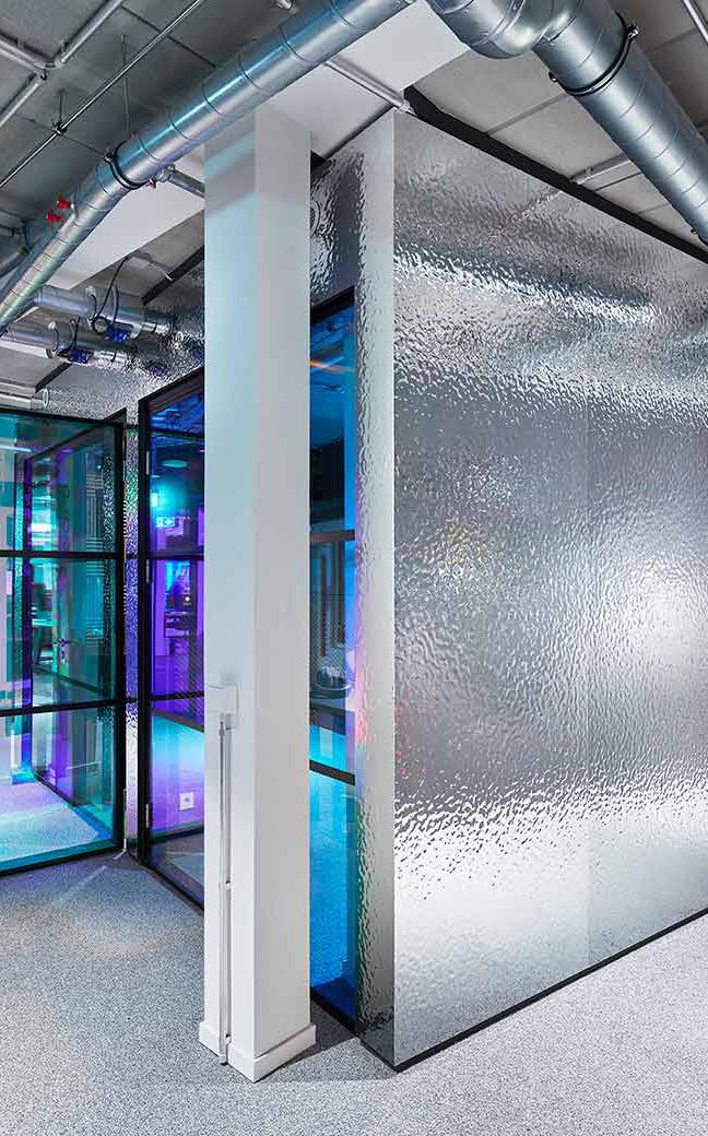 Las vibraciones cromáticas, las inclusiones policromadas, las diferentes opacidades y los efectos de claroscuro crean un nuevo material vivo que transforma los espacios en entornos inmersivos y acogedores.