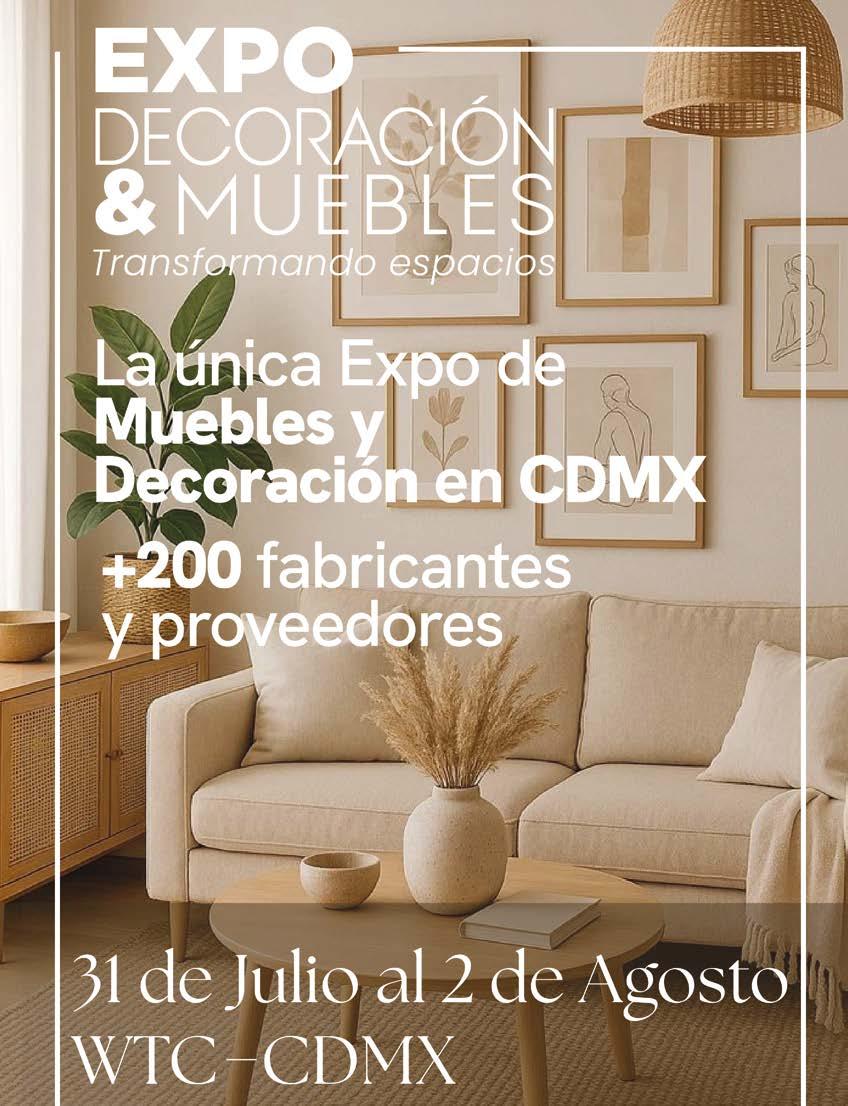 Mobiliario residencial y comercial, artículos y accesorios para el hogar, productos artesanales y religiosos; es decir, decoración, diseño y arte es lo que ofrecerá Expo Decoración & Muebles, que se realizará del 31 de julio al 2 de agosto del presente año en el World Trade Center (WTC) de la Ciudad de México.