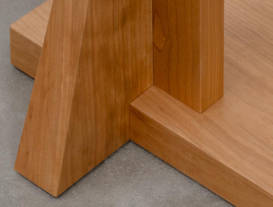 Como afirma el estudio: “Esta búsqueda está sutilmente influenciada por la admiración hacia la comunidad Shaker, Frank Lloyd Wright y George Nakashima, creadores y diseñadores que forjaron sus propios fundamentos estéticos y filosóficos. El enfoque de los Shakers hacia la utilidad y la trascendencia se refleja en las formas esenciales de la colección y en el uso del cerezo, un material profundamente arraigado en la ebanistería estadounidense.