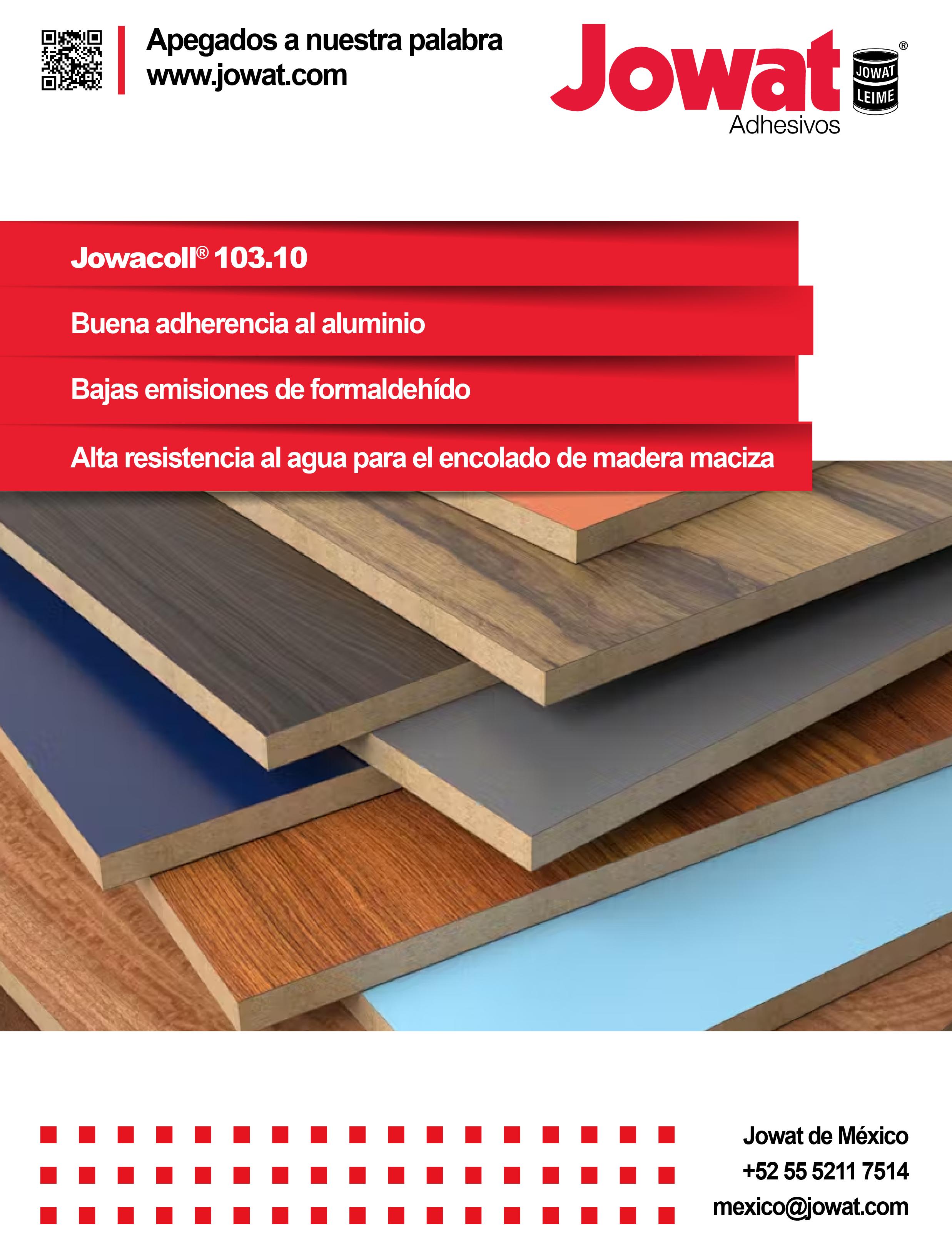 Además, Gabo Internacional ofrece adhesivos específicamente formulados para aplicaciones como laminación en plano de tableros, molduras o perfiles; aplicación en prensa de membrana, para cantos, chapas, perfiles de PVC y aluminio para ventanas.