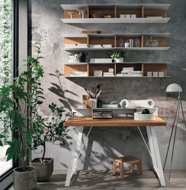 El ambiente del hogar se trans forma y responde a las nece sidades contemporáneas de ambientes multifuncionales y transformables, en línea con la fluidez que caracteriza la nueva vida cotidiana y laboral. Tomasella capta esta nueva necesidad y crea accesorios de decora ción y soluciones integradas que simplifican la organización de los ambientes dedicados al home office o rincones equipados, con puestos de trabajo personalizables.