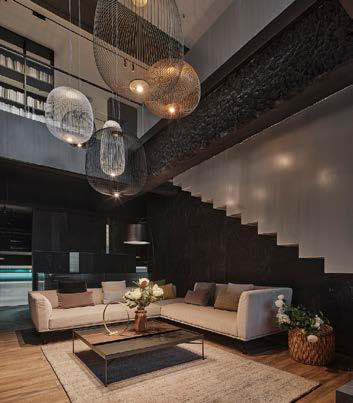 En el mezzanine, se aprecia la mesa Mansions, enmarcada por el sofá Neil.