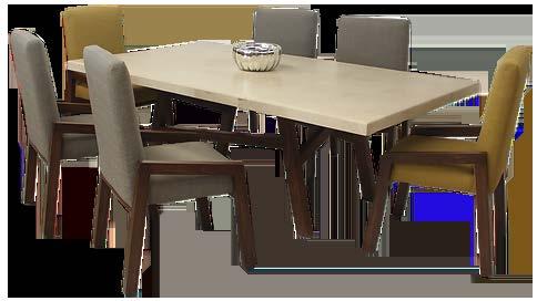 Comedores, sillas, cómo das, credenzas y bancas, entre otros muebles en estilo vanguardista fabri cados con materiales natu rales como el mármol y la madera, y que le dan vida a los espacios del hogar, es lo que ofrece a sus clientes esta empresa del estado de Jalisco.