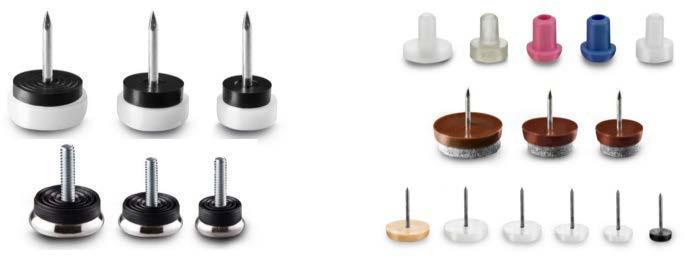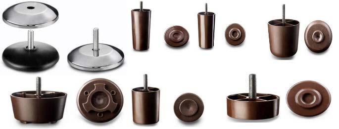 Para la industria mueblera fabrican, además de los niveladores y rodajas, una gran variedad de accesorios de plástico. La empresa tiene una línea de más de 100 acceso rios en diferentes medidas como son: niveladores, tapas, tapo nes, regatones, resbalones, deslizadores, topes, pasacables, rodillos y rodajas, bujes, casquillos, accesorios para camas y literas y para salas.