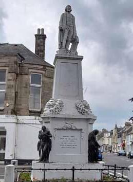 The commemorative statue to Mungo Park in Selkirk. In his right hand, Park holds a sextant. In his left, he is holding a scroll of paper with the words – in the end, prophetic – of his last letter to Lord Camden: “If I could not succeed in the object of my journey, I would at last die on the Niger.” Photo courtesy of A Withers.