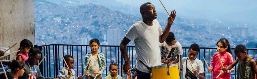 Masthead image: Drumming lessons for local children in Comuna 13. © Anna Pumer