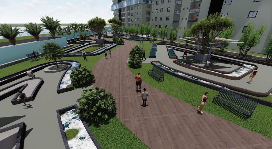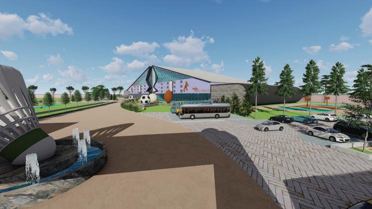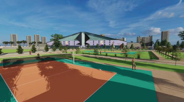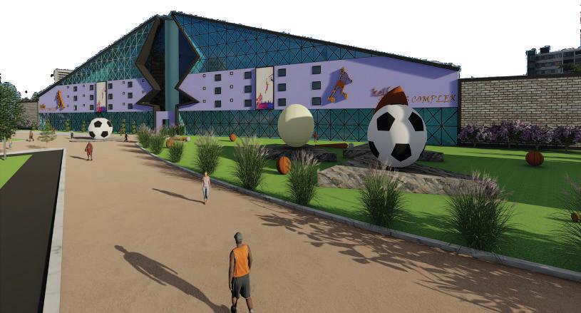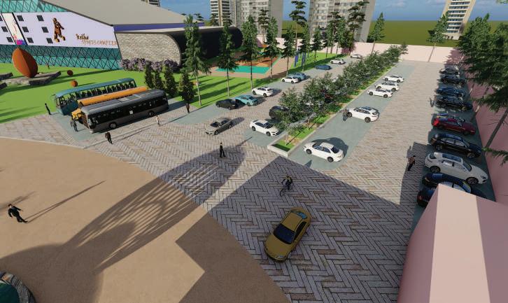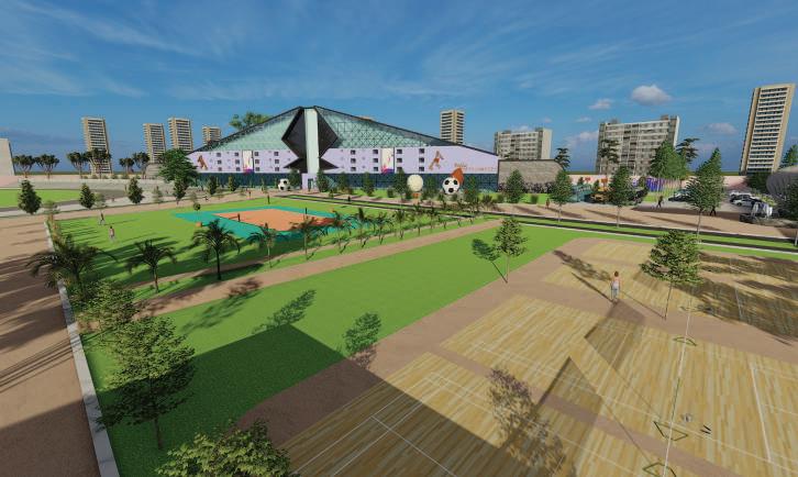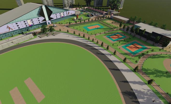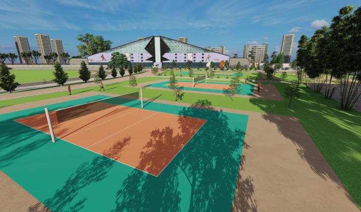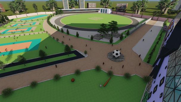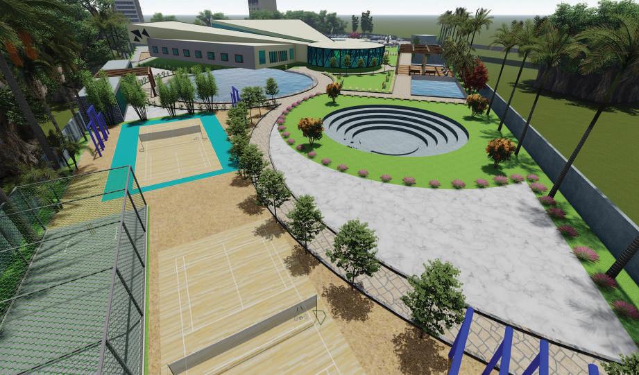 BADMINTION COURTS VOLLEY BALL COURTS GYM PARKING AREA CRICKETER ACCOMDATION SKATE BOARD LANDSCAPE