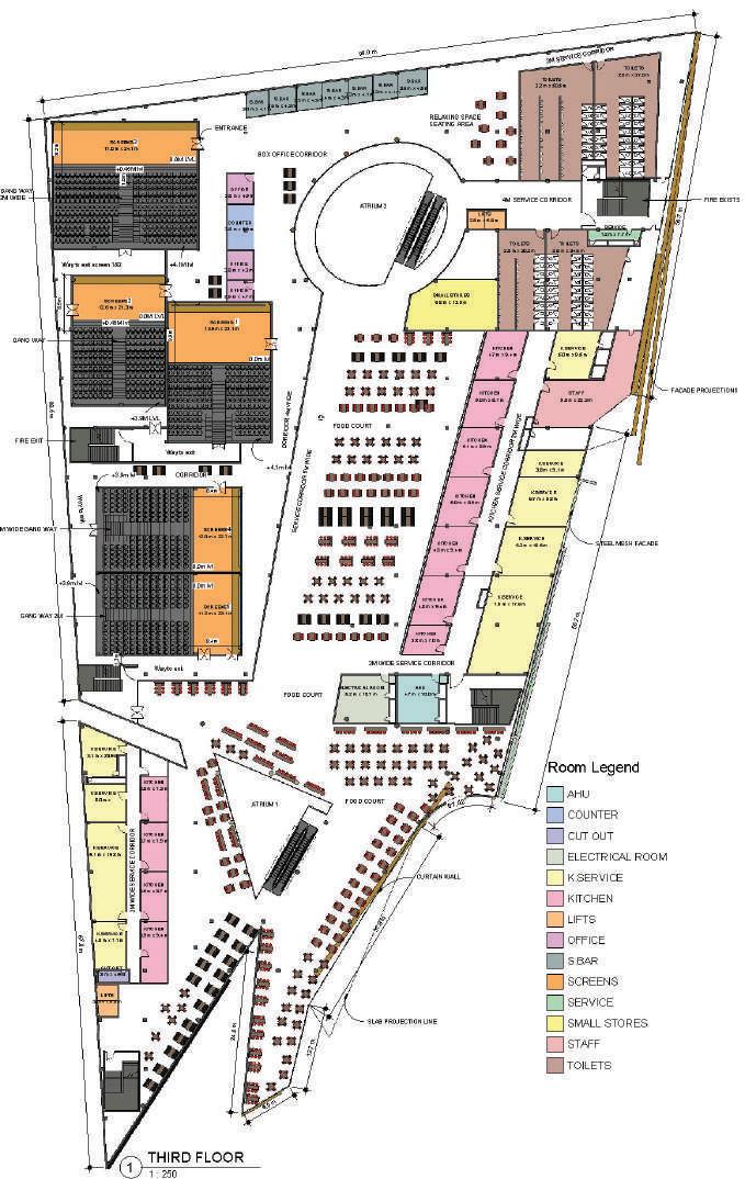 1. Form development are created through the triangular geometry formation and play stepped projection on facade treatment (to create some movement in facade elevation)