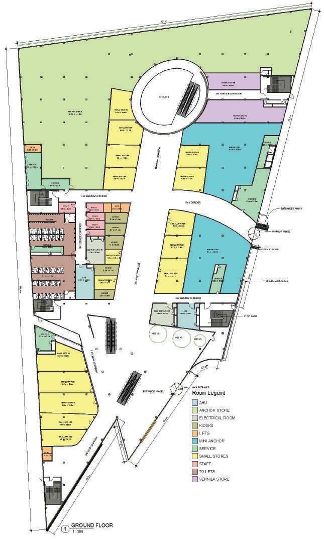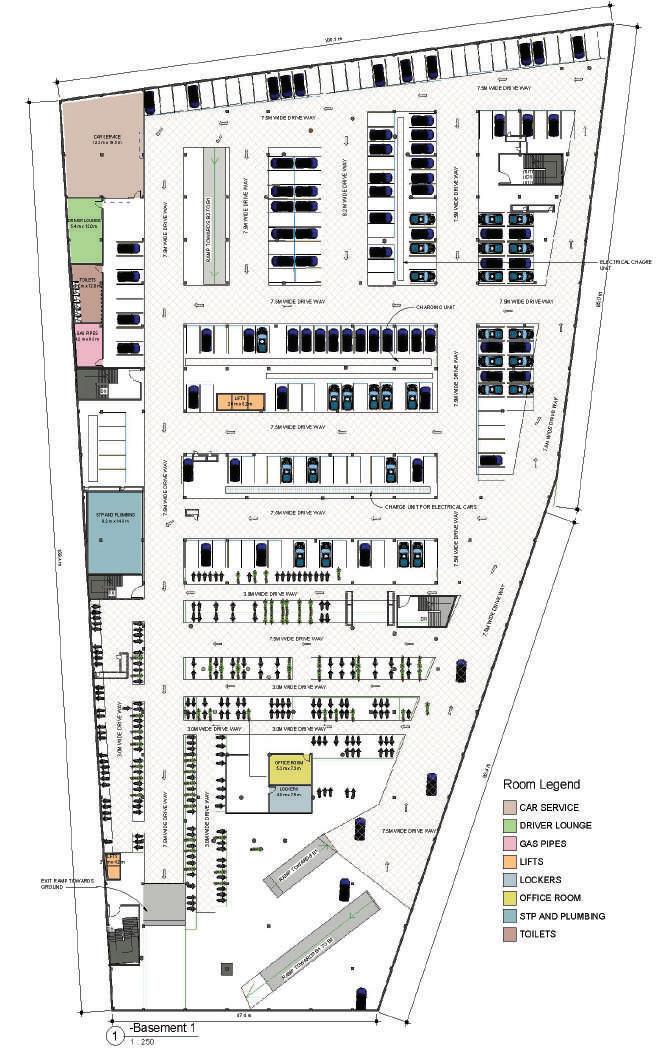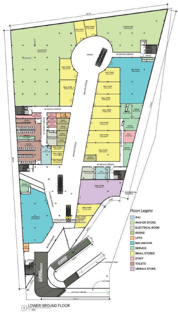 113.7 171 61.5 104.5 88.61 RAMPGROUNDTOB1 RAMP B1 TO GROUND WAY TO EXIT WAY TO ENTRANCE DRIVE WAY 6M WIDE WAY TO ENTRANCE PATH WAY 10M WIDE PATH WAY 4.5 M WIDE LANDSCAPE LANDSCAPE SEATING BENCH 5.38 159.64 6.91 6.12 98.17 8.16 7.01 7.41 BUILT UP AREA 8500SQ.M 1:8RATIOSLOPE 1:8 RATIO SLOPE ARTIUM 18M WIDE ROAD A1 B C D E